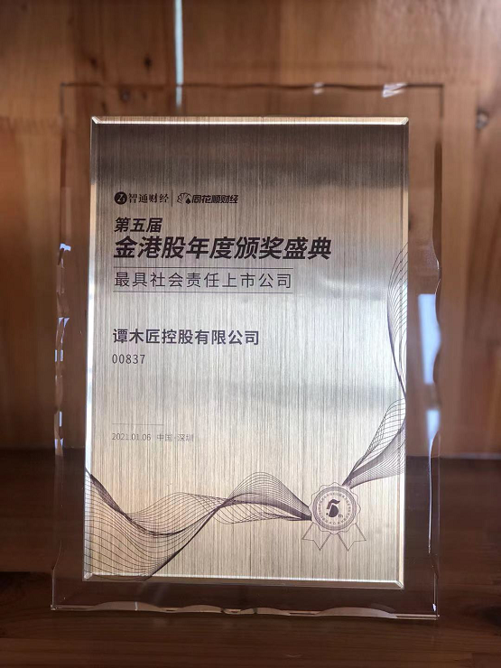 2021年1月6日,第五屆金港股年度頒獎(jiǎng)盛典在廣東深圳舉行,超過(guò)200家銀行、證券、保險(xiǎn)、信托、資管等金融機(jī)構(gòu)以及上千位專業(yè)投資者出席了本次活動(dòng)。譚木匠公司憑借多年履行社會(huì)責(zé)任以及2020年疫情期間在企業(yè)管理和公益踐行的優(yōu)秀表現(xiàn),與恒大、富力地產(chǎn)、國(guó)美、華住集團(tuán)等十余家企業(yè)榮獲“最具社會(huì)責(zé)任上市公司”獎(jiǎng)項(xiàng),這也是譚木匠連續(xù)第四年獲此殊榮。