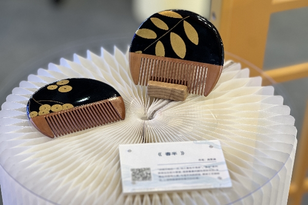 在紅綠拼色的國潮風展館中,既有勾勒著“高低起伏的沙丘之下,連綿不斷的駝隊穿越沙漠”畫面的“一帶一路”拼木俏色雕刻梳,也有結合彩繪、漆藝、螺鈿、雕刻等多種傳統(tǒng)工藝的詩意木梳,還有歷屆譚木匠設計大賽涌現出的創(chuàng)意現代梳具……這些具有時代文化內涵和當代審美意趣的木梳作品,充分體現了重慶乃至中國的文化底蘊,向世界展示大國匠心。