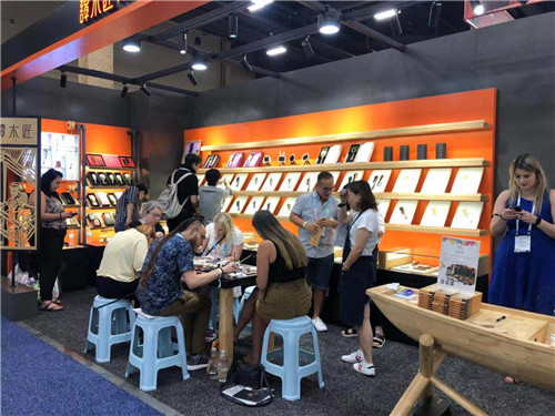 現(xiàn)場木梳彩繪DIY活動別具一格, 給展會增色不少, 一把把譚木匠木梳遞到不同膚色、不同語言的愛好者手中,他們自由想象, 自由設(shè)計(jì)心目中的圖案,為自己亦或?yàn)橹翋郛嬌弦话血?dú)一無二的木梳。一些體驗(yàn)者要求工作人員幫他們把自己的名字音譯成中文寫在梳子上,說中文本身就像一種圖案,很美。現(xiàn)場有位體驗(yàn)者說他兒子馬上要去上大學(xué)了,畫一把梳子送給他兒子, 這樣他兒子每天梳頭的時候都會想到他,同一把木梳,傳遞同樣的情感:愛, 從頭開始。