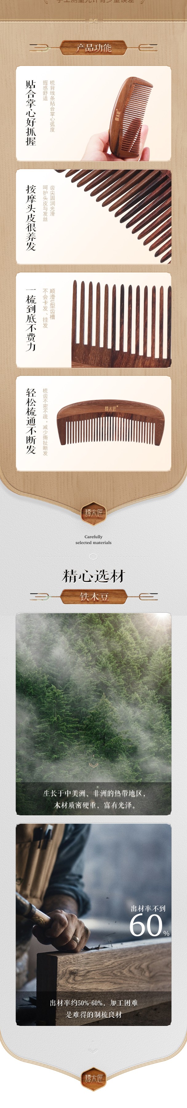 - 梳齒與梳背為垂直紋理拼接,部分產品梳齒也是由拼接工藝而成。