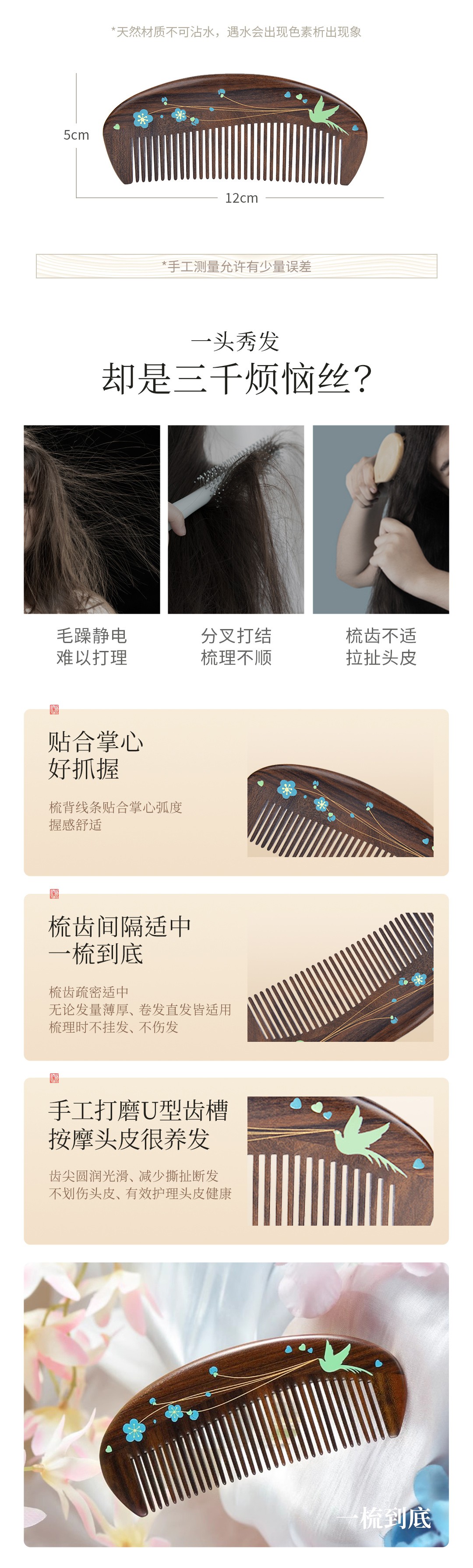 - 梳齒與梳背為垂直紋理拼接,部分產(chǎn)品梳齒也是由拼接工藝而成。